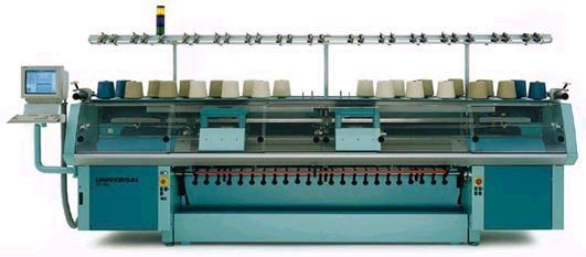 Bei der Rundstrickmaschine werden die Maschen spiralförmig übereinander